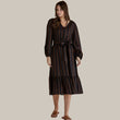 Featuring a button-up front and a flattering V-neckline, the Melissa Dress is accented with an elasticated cuff and self-tie waist for an easy, polished look. Its relaxed fit ensures all-day comfort with a touch of sophistication.