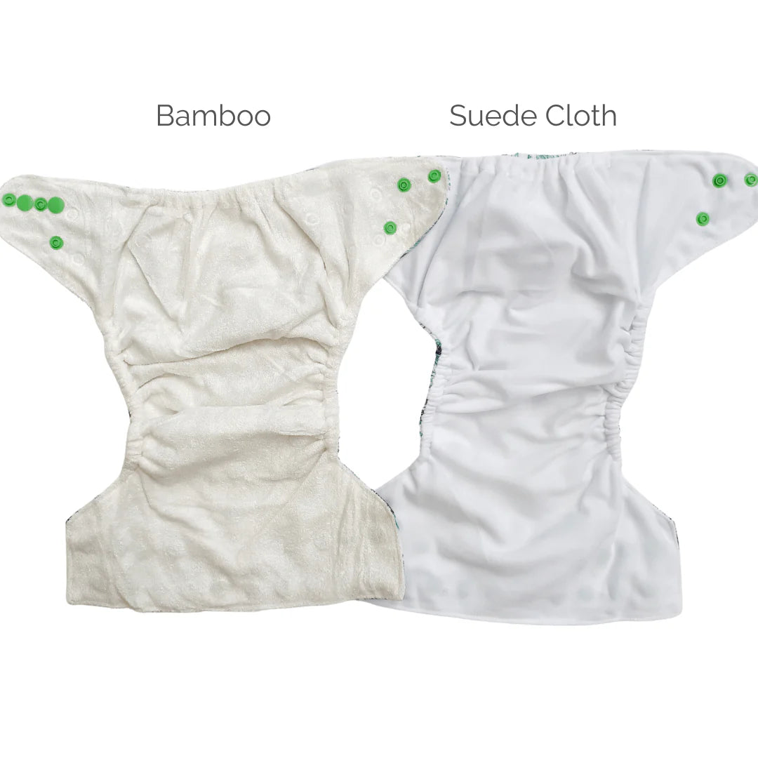 When you make your selection between suede and bamboo, this is the nappy lining fabric, the inner of the nappy that goes against the skin, NOT the insert.